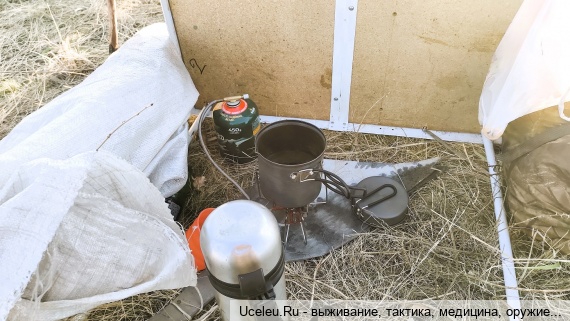 Хотя было солнечно и не холодно, но ветер был очень сильный. У меня даже оттяжку напалатке порвало. А приготовленная уха выдувалась из ложки. Рыбу на уху мы обменяли у местных жителей на бутылку горячительного А чтобы приготовить эту уху столик пришлось использовать как ветроотражающий экран.