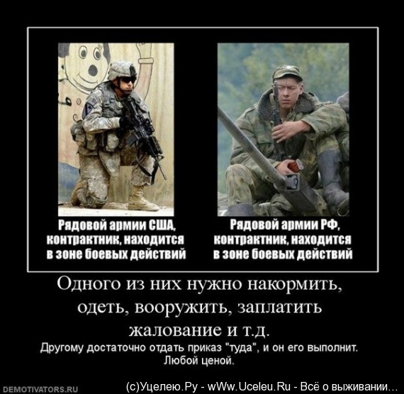 Согласен с тобой полностью, но в то же время у тех армий кои укомплектованны амуниция по самое горло, подготовка и навыки практически равны нулю, за небольшим исключение хорошо заточеных спецподразделений. Вот тоже и у нашей армии, но у нас есть дух, и если что то пойдем и победим в ватниках, голифе, кирзачах и с трехлинейками.