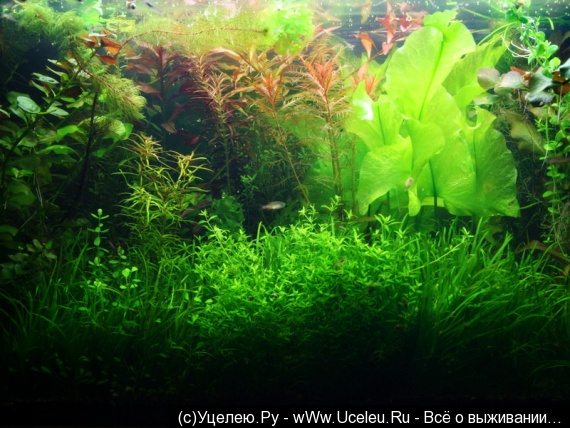 Каждый аквариум индивидуален. Состав воды, условия освещенности, температура… В «интенсивном» аквариуме все эти параметры подгоняются в угоду хозяину. Но мы пойдем другим путем. Путем естественного отбора растений, пригодных для наших условий. Не бойтесь — первый год тычьте по веточке всего, чего ни попадя. Приживется одна пятая. Но она станет основной и стойкой флорой вашего водоема.