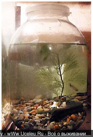 У многих здесь присутствующих кроме выживания в лесах и пустынях есть еще какое-нибудь хобби. Я, например, с детства «погружен» в аквариумы. Не назову себя знатоком или, тем более, профи в этом деле, но сколько себя помню — в доме были рыбки. Родители рассказывают, что когда мне было два года, в гостях у их знакомой накрепко прилипал к стеклу и шептал: «гуппи-гуппи...» Многие соглашаются, что да — иметь дома что-то живое очень интересно и красиво и для детей полезно. Но собака грызет мебель, кошка гадит в тапки, попугай орёт, черепаха скребётся всю ночь, а аквариум «ну это же очень сложно, всё время его чистить, воду менять, фильтровать, ухаживать!». Со всеми первыми пунктами соглашусь — были у нас и собаки и кошки и птицы и черепахи — и все они доставляли немало хлопот (хотя ИМХО радости приносили ещё больше) Но сложность в содержании аквариума — распространенное заблуждение. И здесь я хочу рассказать, как можно сделать аквариум своим детям с минимумом затрат и забот.