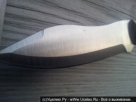 Скос обуха. Расширение лезвия образует эдакий «мачетеобразный загиб». Режущая часть начинается от самой рукояти.